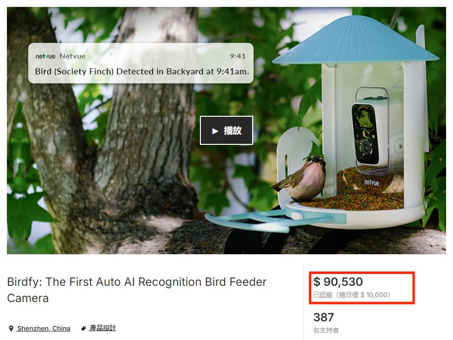 Birdfy首次眾籌近十萬(wàn)美金 圖源:kickstarter