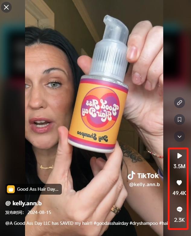 該產品之所以爆火,離不開以下幾個原因:首先是價格夠親民,該款干洗洗發水在TikTok上銷售單價為9.5至24美金,大部分人都消費得起;其次是產品成分足夠天然,在保證能夠讓頭皮更清爽的情況下做到不含有害物質,是迎合消費市場的;再一個就是優秀的營銷,在TikTok這樣一個天然的“爆款培養皿”中,任何產品爆火都并不令人意外。