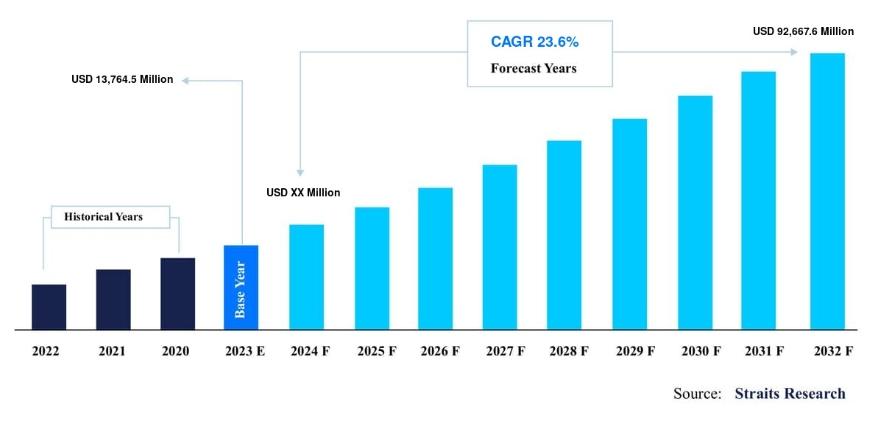 以清潔機器人為例,作為自動化機器,可以清潔地板、游泳池、窗戶和草坪,幾乎不需要人工參與。據相關數據顯示,2023年全球清潔機器人市場規模為137.645億美元,預計到2032年將達到926.676億美元,2024年至2032年的復合年增長率為23.6%
