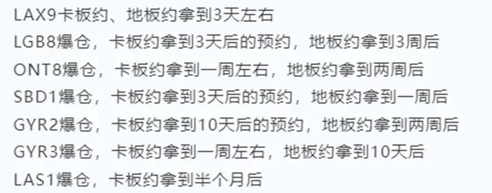 除了物流成本問題,倉庫爆倉也讓買家心力交瘁。據(jù)了解,近期亞馬遜美西多個(gè)FBA倉庫爆倉了,如LGB8、ONT8、GYR2、SBD1等倉庫均出現(xiàn)了爆倉現(xiàn)象,普通卡板約拿到3天至一周時(shí)間左右,個(gè)別倉庫甚至需要半個(gè)月,地板約拿到一周至兩周后。