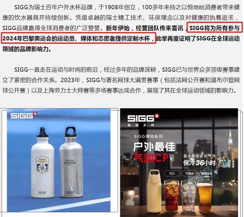 SIGG品牌參與2024年巴黎奧運?圖源:哈爾斯HAERS