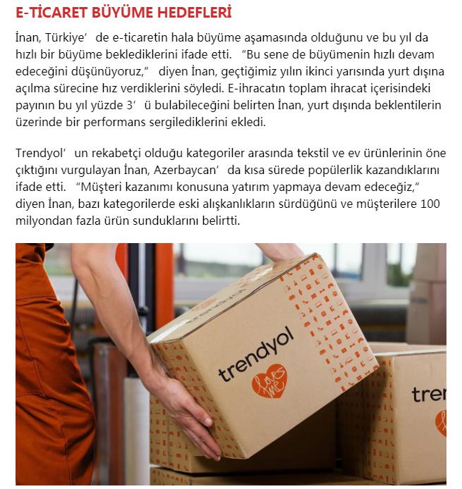 伊南表示,Trendyol在去年下半年加快了海外擴張的進程,在國外的表現超出預期,6個月內就成為了阿塞拜疆下載次數最多的應用程序。紡織品和家居產品是Trendyo競爭力最強的品類之一,在阿塞拜疆等市場上受到歡迎。由于土耳其的電子商務仍處于增長階段,預計今年也將快速增長,今年電商出口在平臺總出口額中的占比可能達到3%。