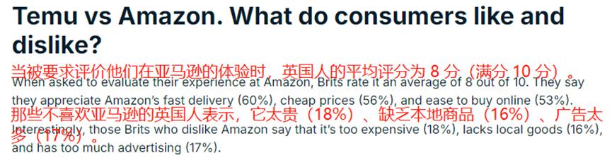 根據Omnisend的調查報告,相當一部分的英國消費者如今開始認為:相較于中國電商平臺,亞馬遜、eBay等老牌電商的商品價格顯得過于昂貴了一些。對于那些不喜歡在亞馬遜上購物的英國消費者而言,亞馬遜的商品售價較高,而且缺少一些本地商品。從這個角度來看,商品種類齊全、物美價廉的中國電商平臺,就完美符合了他們的購物需求。