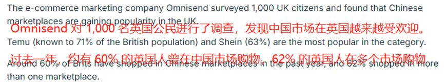 “中國電商平臺的迅速崛起對英國本土零售商構成了巨大挑戰,尤其是那些依賴較高利潤的小型獨立商家。”Omnisend的電商專家這樣表示。如專家所言,由于經濟下行,當今英國消費者紛紛勒緊了褲腰帶,他們相較以往更加熱衷于購買低價、折扣多、優惠力度大的商品。因此,在價格上沒有優勢的英國中小型傳統零售商,就很難與實力強勁的中國跨境電商平臺競爭了。