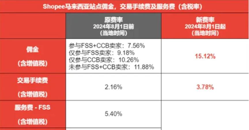 就在不久前,Shopee連發三條通知,宣布自今年8月1日起上調菲律賓、新加坡和馬來西亞這三大站點的傭金費率,其中馬來西亞站點的賣家傭金費率統一漲至15.12%;Lazada緊跟其后,也宣布將從8月15日起提高交易費用,其中數碼產品類目的傭金費率上調至20.5%;而TikTok Shop最終也架不住成本壓力,宣布將于9月份提高馬來西亞站點多個產品類別的傭金費率。