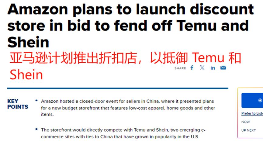 不過,消費者心態的變化、Temu等廉價電商平臺的強勢崛起,也倒逼著亞馬遜等平臺走向低價競爭。