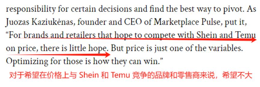 2023年年底,美國小型企業電子商務平臺Jane.com就在其破產文件中寫道,他們“不可能在價格上和Temu這樣的網站競爭。”而Marketplace Pulse創始人兼首席執行官Juozas Kaziuk?nas也指出,對于打算在價格上和Temu一較高下的品牌和平臺來說,希望渺茫。