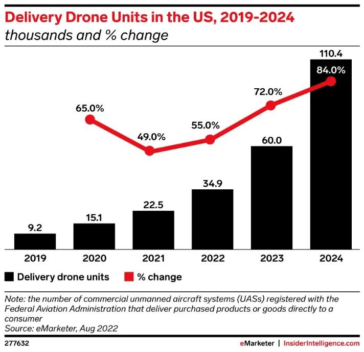 美國無人機送貨趨勢 圖源:Insider Intelligence