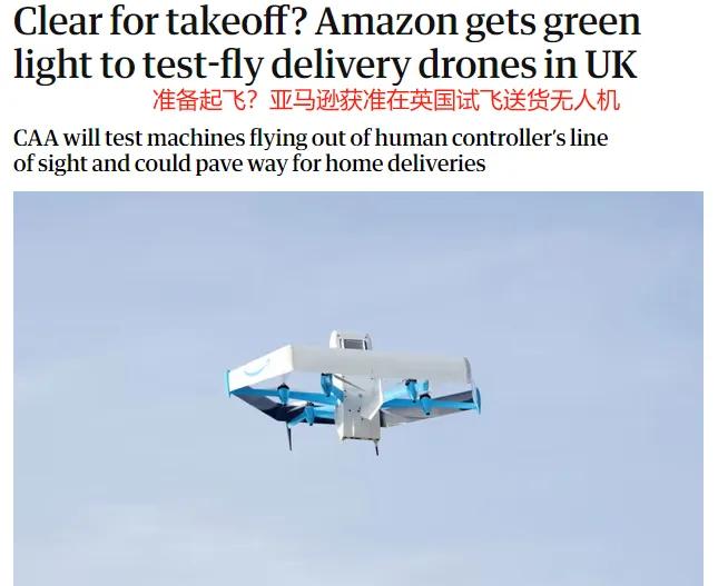文章來源于互聯網:亮起綠燈,亞馬遜無人機送貨在英國獲批