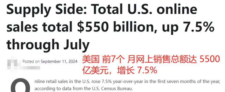 與之形成鮮明對比的是,今年前7個月美國零售總額僅同比增長了3.1%。這其中,電商占到了零售額增長的一半。因此有從業者得出這樣的結論:“電子商務的增長已成為2024年所有零售業的關鍵驅動力。”