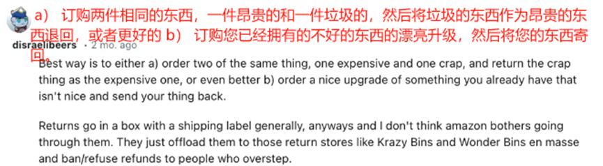 在美國知名社交網站Reddit上,就有人發布了這樣一個論壇話題:“在亞馬遜上獲得僅退款不退貨的最道德的方式是什么?”此話題一出現,就引起了廣泛討論,不少“經驗人士”紛紛開始出謀劃策。