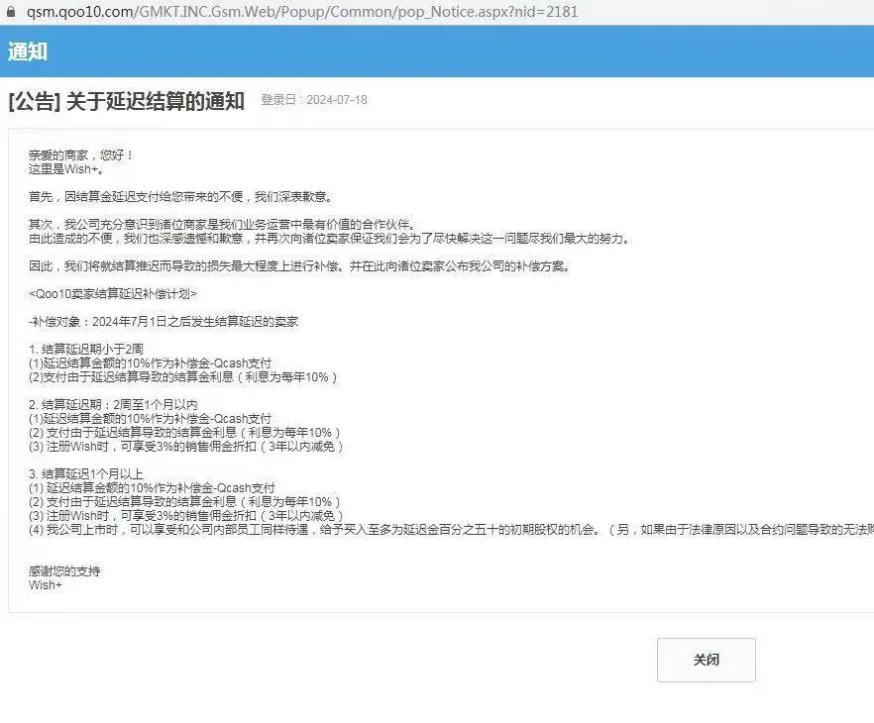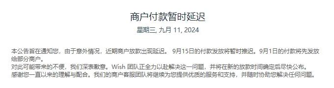 比如在今年7月,Wish發布了一則“關于延遲結算的通知”,很多賣家都非常關心平臺是否會跑路一事,好在Wish最后也積極給出了補償的方案。