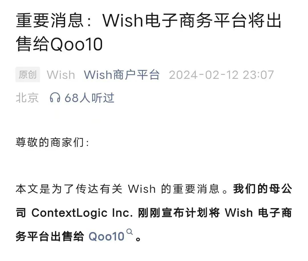 今年2月,Wish發布公告,母公司ContextLogic決定將其以1.73億美元的價格出售給Qoo10,這個出售價格僅相當于2020年時IPO的1%。要知道Wish巔峰時期可是與亞馬遜、eBay等老牌電商巨頭齊名的,如今一切都已“物是人非”。