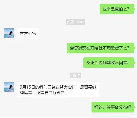 另外有賣家稱自己收到了Wish官方招商經理的反饋,“9月15日的我們已經在努力安排,是否還要繼續運營,還需要自行判斷”。根據跨境電商爆料專業戶的消息,目前賣家已經組建維權群,被扣押的款項從幾萬到十幾萬不等。
