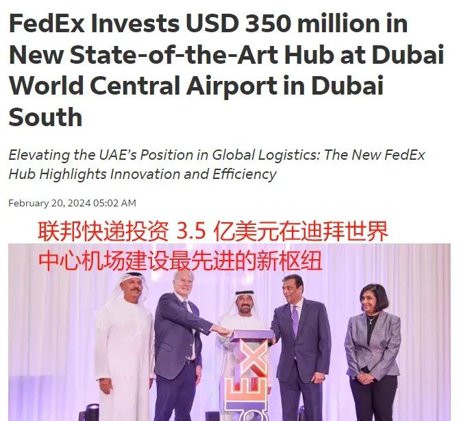 今年2月,聯邦快遞宣布將在迪拜投資超過3.5億美元,這筆資金用來建立了一個先進的物流中心,以此來擴大其在中東、南亞和非洲地區的業務。