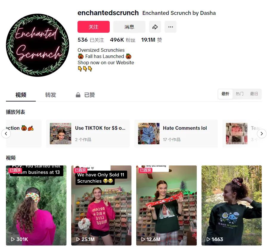 隨著近些年持續(xù)開發(fā)產(chǎn)品并不斷營(yíng)銷,品牌的TikTok賬號(hào)已經(jīng)積累了49.6萬(wàn)粉絲數(shù)、1910萬(wàn)次點(diǎn)贊。現(xiàn)在的Dasha幾乎每天都會(huì)發(fā)布視頻,視頻內(nèi)容大多是展示發(fā)圈設(shè)計(jì)和佩戴效果,同時(shí)她也會(huì)定期直播,進(jìn)一步穩(wěn)固客戶、拉動(dòng)銷量。
