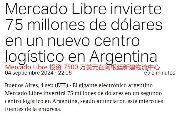 在老本家阿根廷,盡管經濟壓力持續上升,通貨膨脹率高達250%,但美客多依然保持樂觀。就在9月初,美客多宣布將投資7500萬美元,在阿根廷建設第二個物流中心。美客多還表示,這項投資是美客多在阿根廷市場的中長期投資,因為阿根廷市場仍有很大的增長空間。