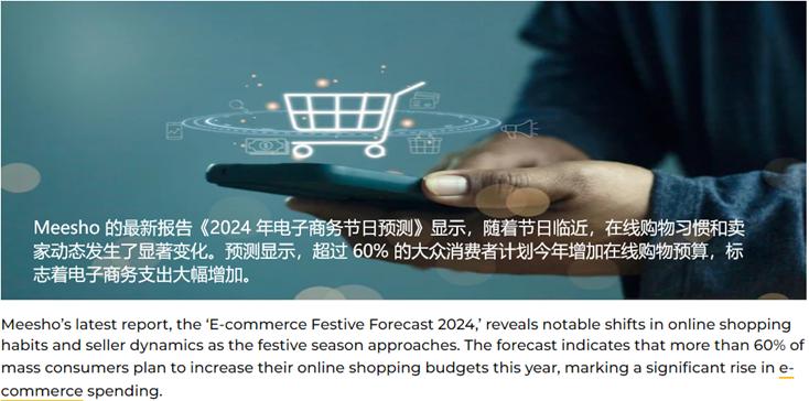 其中就包括新興市場(chǎng)——印度。據(jù)報(bào)道,近日,印度知名時(shí)尚電商平臺(tái)Meesho通過(guò)一項(xiàng)面向100萬(wàn)名Meesho印度用戶和25萬(wàn)名賣家的調(diào)查,發(fā)布了《2024年電商假日季預(yù)測(cè)》報(bào)告,報(bào)告指出,盡管經(jīng)濟(jì)下行沖擊消費(fèi)者信心,但大部分印度消費(fèi)者對(duì)年底旺季還是抱有期待。