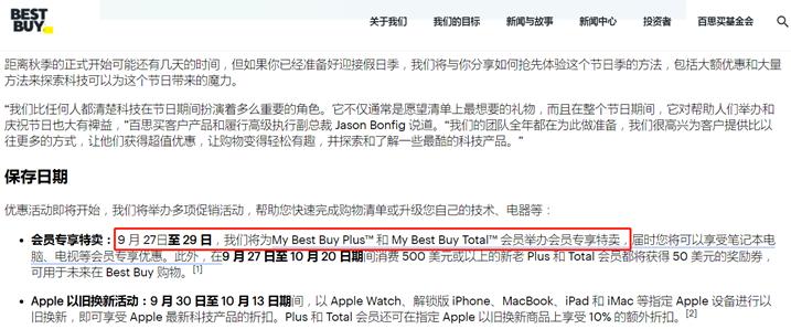 根據(jù)百思買發(fā)布的消息,它將于9月27日至9月29日率先推出針對其“My Best Buy”忠誠度計劃的會員專享促銷活動。特別是My Best Buy Plus和My Best Buy Total會員,將能獨享電子產(chǎn)品、筆記本電腦和電視等熱門商品的獨家優(yōu)惠。