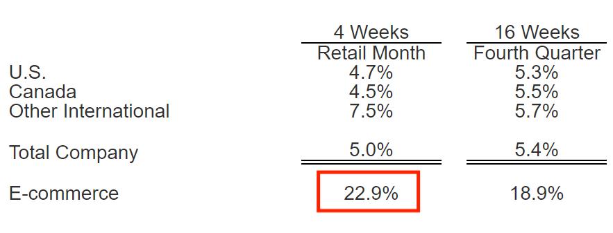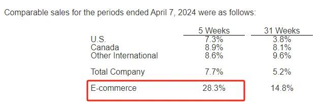 而說回Costco,除了今年8月的財報,其實從今年3月的銷售報告上來看,就已經能夠發現電商成為了推動其銷售額增長重要因素,彼時其電商領域的可比銷售額上漲了28.3%。