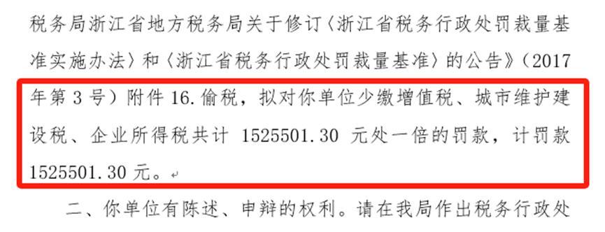 開出多份補稅罰單 圖源:國家稅務總局浙江省稅務局