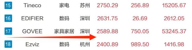 同樣深耕智能照明領(lǐng)域并取得突破性市場成果的還有Govee,和Meross、Yeelight 相比,Govee的成立時間還要更晚些,于2017年成立,但Govee躋身頭部的速度還要更快。在《每日經(jīng)濟(jì)新聞》聯(lián)合深圳易勢科技發(fā)布的2024上半年《中國跨境電商品牌影響力榜》中,Govee以第17的名次赫然在列,在家居領(lǐng)域僅次于三巨頭石頭、追覓、添可。