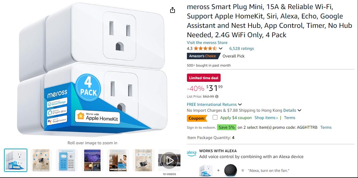 Meross明星單品智能插座在亞馬遜熱銷 圖源:Amazon?