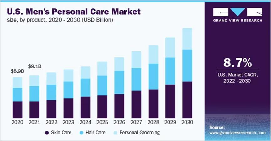美國男性個(gè)人護(hù)理市場持續(xù)增長 圖源:Grand View Research