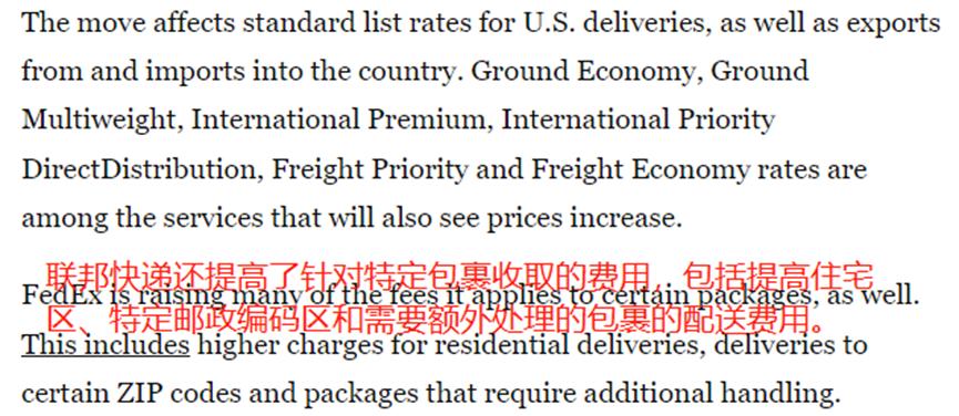 面對航空服務(wù)費(fèi)率的上漲,一些賣家可能會嘗試轉(zhuǎn)向地面運(yùn)送服務(wù)。但事實上,F(xiàn)edEx地面長距離運(yùn)送服務(wù)的費(fèi)率上漲得更猛。據(jù)悉,該巨頭額外提高了部分特定包裹的配送費(fèi)用,比如住宅區(qū)包裹、特定郵政編碼區(qū)包裹和需要額外處理的包裹,從而有可能加重電商賣家的物流負(fù)擔(dān)。