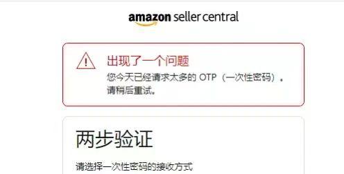 根據眾多賣家的反饋,在登錄亞馬遜后臺的時候收不到二步驗證碼并且彈出一個界面,稱“您今天已經請求太多的OTP(一次性密碼),請稍后重試。”大賣群里表示,這次收不到驗證是因為系統出現了大面積Bug。