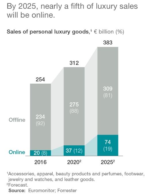2025年線上奢侈品銷售將達860億美元 圖源:mckinsey