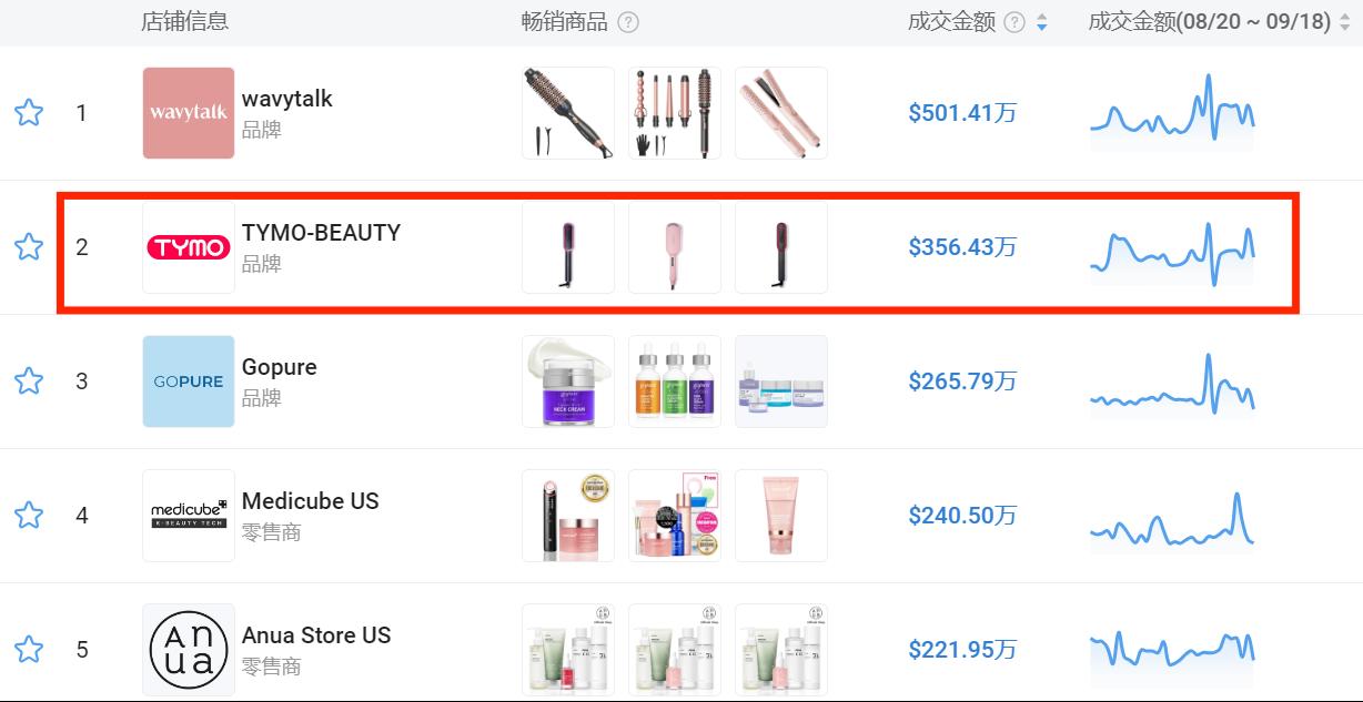 2019年,TYMO Beauty在上海成立,以亞馬遜美國(guó)站為起點(diǎn),開始了它的出海之旅;2022年,TYMO迎來第一個(gè)里程碑,其兩款產(chǎn)品登上亞馬遜美國(guó)站年度銷售額排行榜前8,總銷量排名第一。