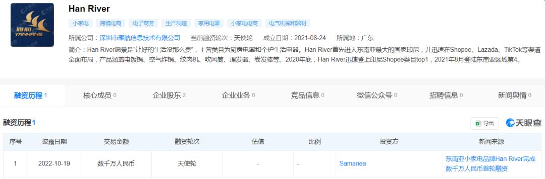 據了解,HAN RIVER出海之初就選擇了東南亞最大的市場印尼,并迅速在Shopee、Lazada、TikTok等渠道鋪貨。2020年底,HAN RIVER登上印尼Shopee類目top1,2021年8月上榜東南亞區域第4,2022年,HAN RIVER拿下了數千萬人民幣的天使輪融資。