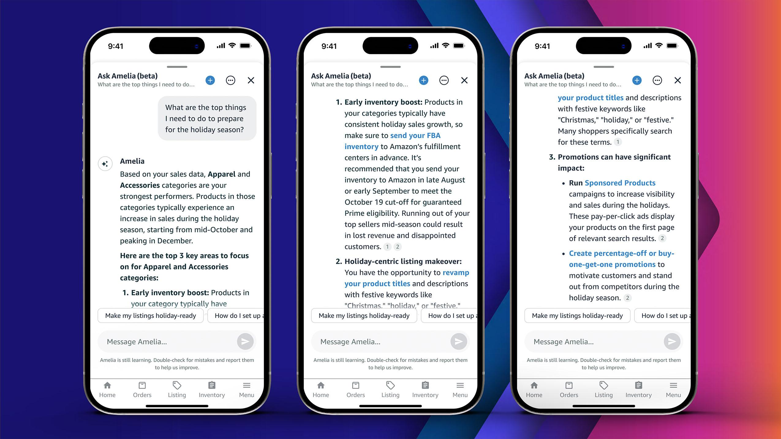 亞馬遜表示,“我們始終致力于為我們的銷售合作伙伴配備最有效的工具和能力,使他們能夠更輕松地開創和發展成功的業務。通過利用生成式人工智能的變革力量,我們正在創建和部署技術,以改善賣家管理和發展業務的方式。Project Amelia等創新解決方案正在減少賣家管理業務所需的時間、精力和資源,使他們有更多時間打造優質產品并取悅客戶?!?/p>