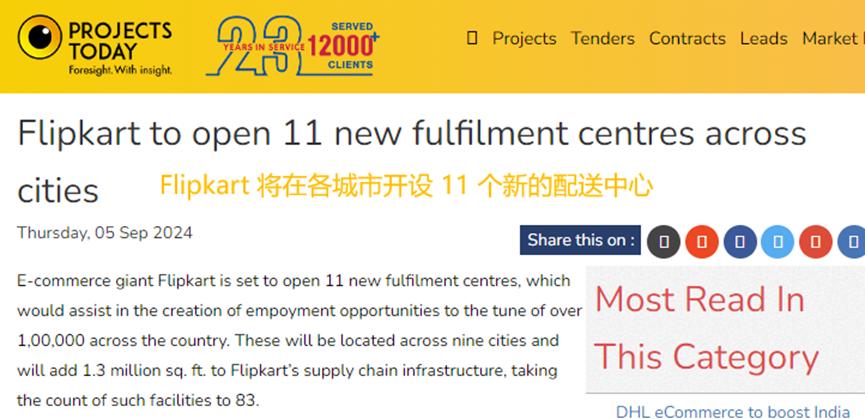 Flipkart將在印度開(kāi)設(shè)11個(gè)新配送中心 圖源:Projects Today