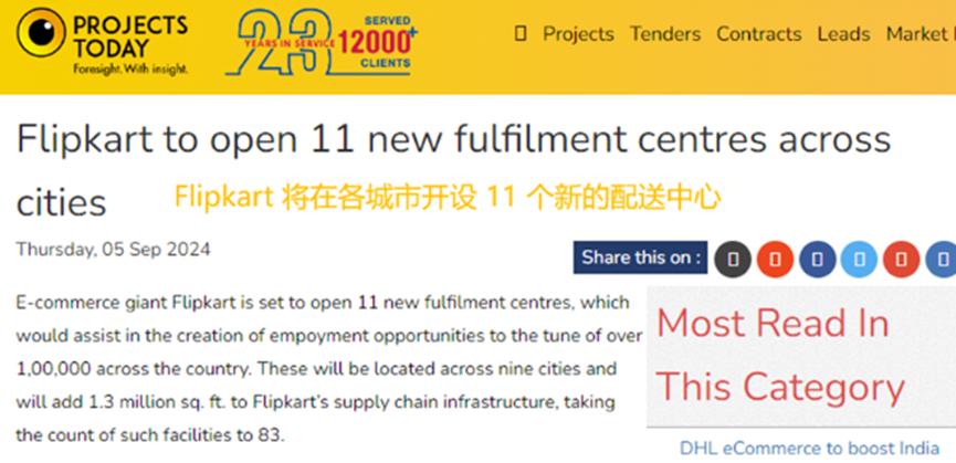Flipkart大促前加設(shè)11個(gè)新配送中心 圖源:Projects Today