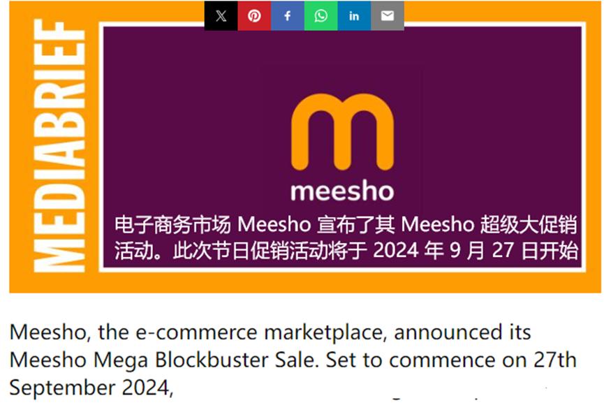 Meesho旺季大促將于9月27日開(kāi)始 圖源:Media Brief