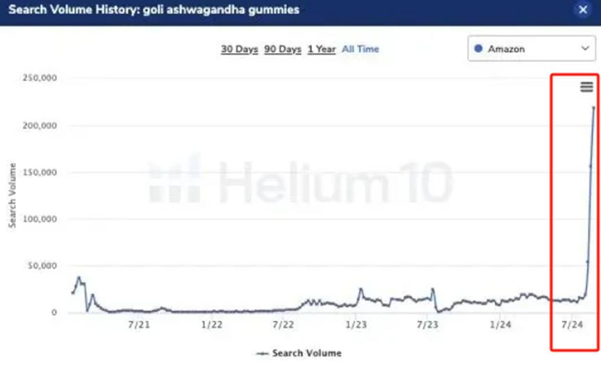 在亞馬遜平臺的搜索量激增 圖源:Hellum 10