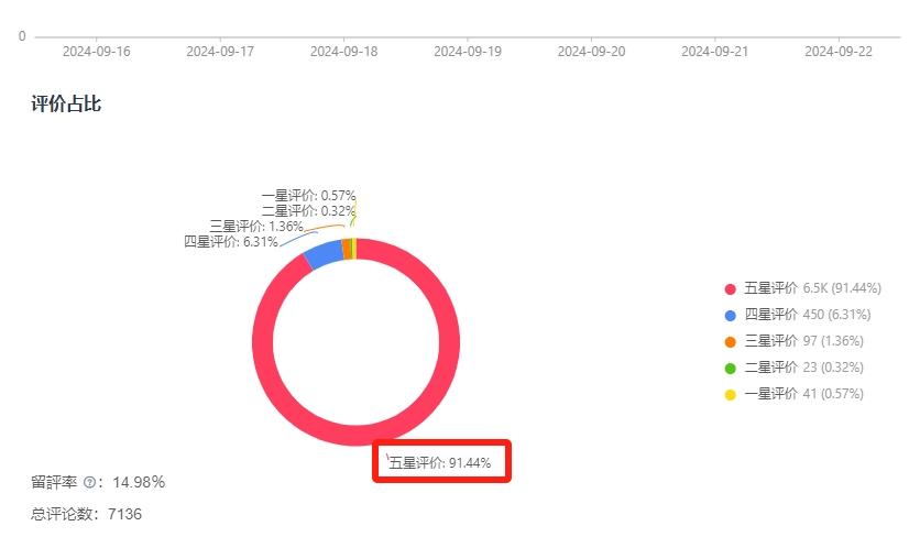 點進CIVAGO一款售價5.21美元的保溫杯商品詳情頁中,可以看到在總共7136條評論中,消費者五星好評占據著91.44%,產品過硬的質量也是高銷量的一大保障。