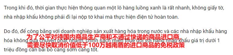 同時,隨著越南市場上的小額交易量持續增長,越南國民議會財政和預算委員會也曾提出要對100萬越南盾(約合40美元)以下的進口商品征收增值稅。雖然這項建議尚未落地實施,但從目前不少政府人士都表示支持的態度來看,未來這項建議成為現實也并非全無可能。