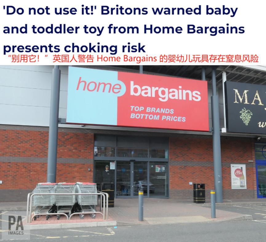 比如,不久前,該機構(gòu)就宣布將召回英國雜貨連鎖店Home Bargains生產(chǎn)的一款名為“我的第一座跌落滾塔”的多色傾斜塑料塔玩具,原因是該產(chǎn)品搭配的搖鈴球尺寸小于標準尺寸,幼兒可能會將小球放入嘴里并導(dǎo)致窒息。目前,Home Bargains已經(jīng)按規(guī)定召回了該產(chǎn)品并提供全額退款。