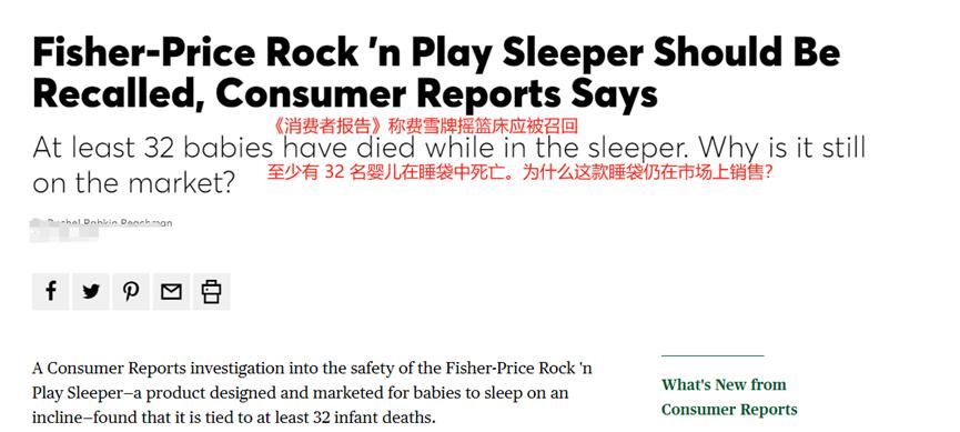 舉例來說,2019年,美國費雪公司就被爆出其生產(chǎn)的一款嬰兒搖床由于存在設(shè)計缺陷,容易使嬰幼兒在翻身、伏趴的過程中被凹陷卡住,從而引發(fā)窒息風(fēng)險,在該產(chǎn)品上架的10年期間,已導(dǎo)致32名嬰兒死亡。而后該產(chǎn)品被美國消費品安全委員會召回。