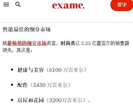 當然,這一結論并不是沒有依據的:時尚品類一直是巴西市場表現最為突出的類別,在2022年,巴西時尚類別產品銷量高達580萬件,占總數(超2480萬件)的24%。2023年第一季度,巴西電商銷售額為7.03億雷亞爾,時尚品類以2.55億美元占據銷售額首位。