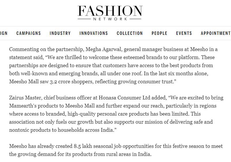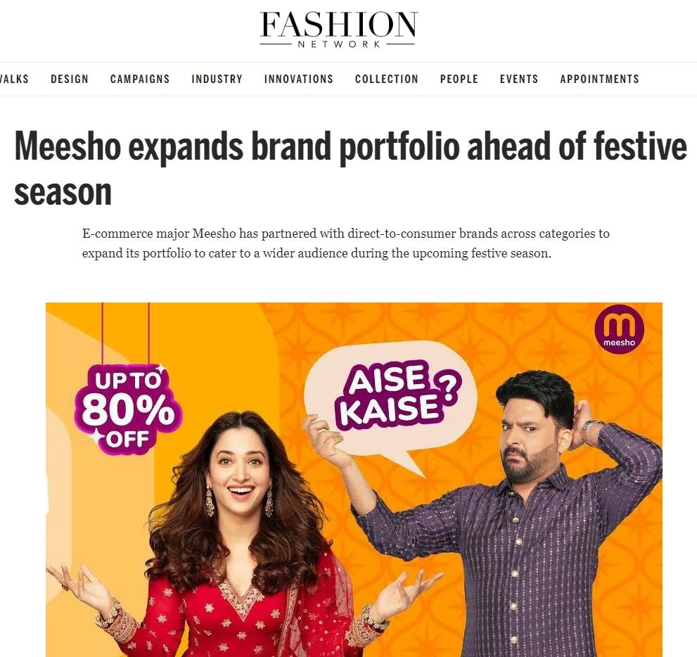文章來源于互聯網:Meesho與多個DTC品牌合作 擴大產品范圍