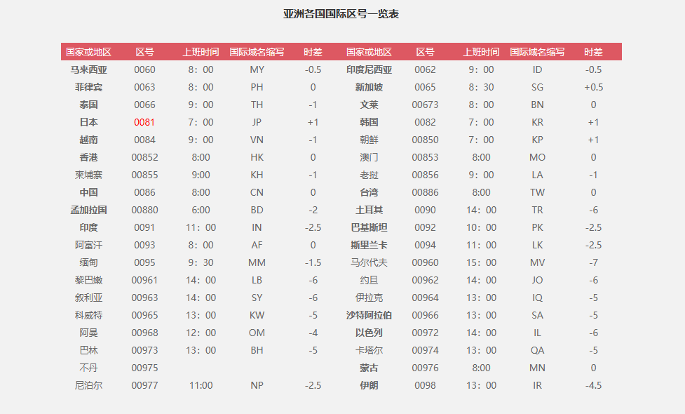 文章來源于互聯網:國際電話號碼區號查詢 + 世界各國上班時間匯總整理