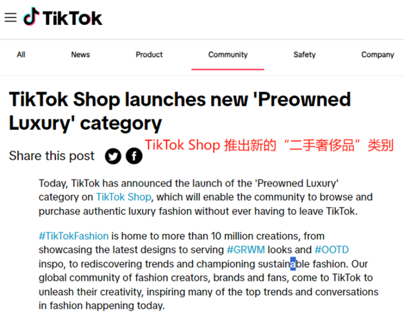之后不久,社交電商巨頭TikTok Shop也緊跟新風口,宣布將在TikTok應用程序內為英國站點的消費者提供二手奢侈品,以便讓他們能更方便地購買到二手高端服裝和奢侈品手袋等產品。