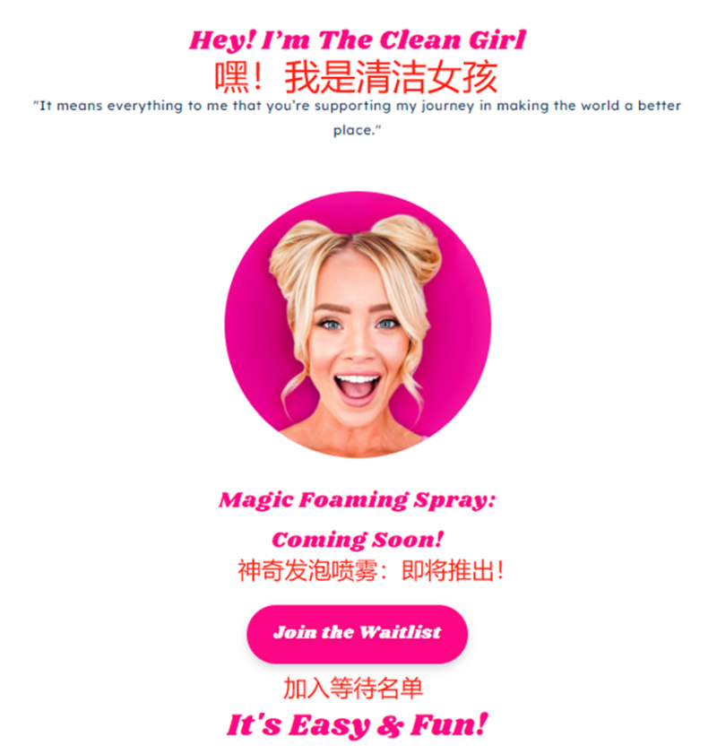 數據顯示,目前“the clean girl”賬號已經獲得了3400萬點贊,所有視頻播放量都超過百萬,其中一條清掃墓地的視頻更是獲得上億播放量。而其在網站的清潔泡沫產品,更是有超400萬人預約購買,就等商品上架。