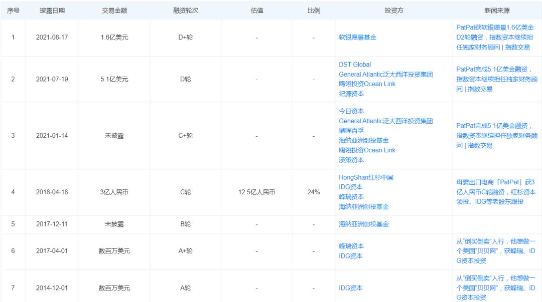 PatPat融資歷程 圖源:天眼查