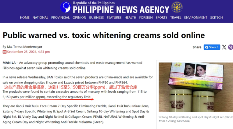 差不多是同一時(shí)間,監(jiān)督機(jī)構(gòu)BANToxics也發(fā)出警告,指出Shopee和Lazada平臺(tái)在售的多款美白霜產(chǎn)品含有過(guò)量的汞,不符合相關(guān)合規(guī)規(guī)定,建議迅速將它們下架,以便造成更多使用事故。