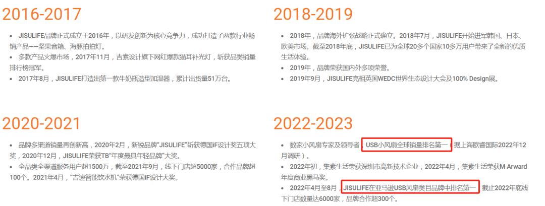在小家電賽道深耕8年的JisuLife就將這門生意做到了全球第一。2020年,JisuLife的小風扇產(chǎn)品累計出貨量超過了480萬臺;2022年,JisuLife的USB小風扇拿下了全球銷量冠軍;2023年,JisuLife的便攜式風扇出貨量再次登頂全球第一,達到1000萬臺。